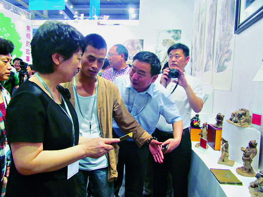 趙素萍對我市展出的泥塑、泥咕咕、裸眼3D產(chǎn)品、動漫短片等表現(xiàn)出濃厚的興趣,希望參展企業(yè)在宣傳推介文化產(chǎn)品的同時,積極學(xué)習(xí)外地在文化產(chǎn)業(yè)發(fā)展方面的經(jīng)驗和做法,不斷完善提升,為我市乃至全省文化產(chǎn)業(yè)的大發(fā)展大繁榮提供強有力的支持。在河南三陽光電有限公司展臺處,趙素萍觀看了裸眼3D產(chǎn)品展示,認(rèn)為該項目科技含量高、市場潛力大,鼓勵企業(yè)加快開發(fā)更舒適、更逼真的產(chǎn)品,早日實現(xiàn)產(chǎn)品進入家庭的目標(biāo)。在魂子泥塑藝術(shù)有限公司展臺處,趙素萍認(rèn)真察看該公司的展品,并與公司負責(zé)人、河南民間工藝美術(shù)大師宋慶春親切交談,鼓勵他進一步將傳統(tǒng)文化與現(xiàn)代創(chuàng)意相融合,做出更多更好的工藝品。趙素萍還觀看了市華寶動漫有限公司出品的動漫短片《小鶴仙與大水怪》,對該公司的創(chuàng)意及制作水平給予充分肯定。