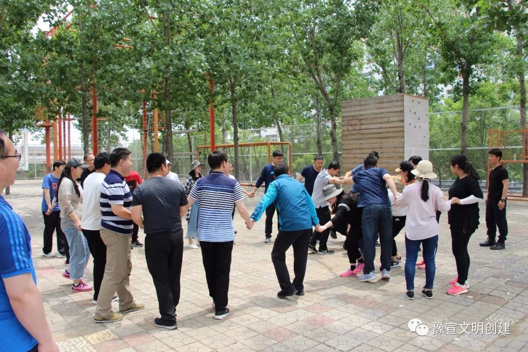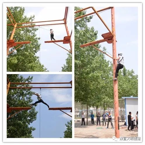 從一開始的團(tuán)隊(duì)破冰,到考驗(yàn)智慧和勇氣的互動游戲,大家相互配合、彼此信任,英姿颯爽、奮力拼搏。在“高空斷橋”項(xiàng)目中,隊(duì)員們爬上8米高空,躍過斷橋后折回,再從空中降落。當(dāng)有隊(duì)員面對高空遲疑害怕時,其他隊(duì)員都紛紛加油鼓勁,耐心等待,傳遞著集體溫暖的力量,最終所有隊(duì)員都順利完成了挑戰(zhàn)。