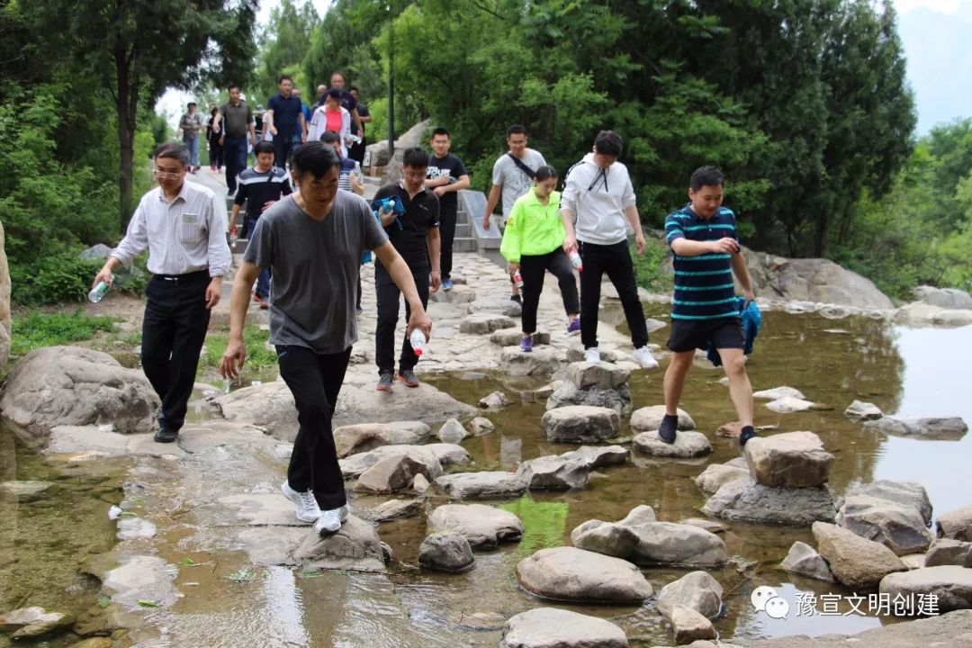 在下午攀登嵩山的過程中,大家伴著潺潺流水,聽著松濤陣陣,嗅著山林清香,相互鼓勵、相互扶持,人群中不時傳出悅耳的笑聲,在進(jìn)行戶外鍛煉的同時也很好地放松了心情。這些別出心裁的活動都得到了青年干部熱情高漲的參與,也得到了大家的一致好評。